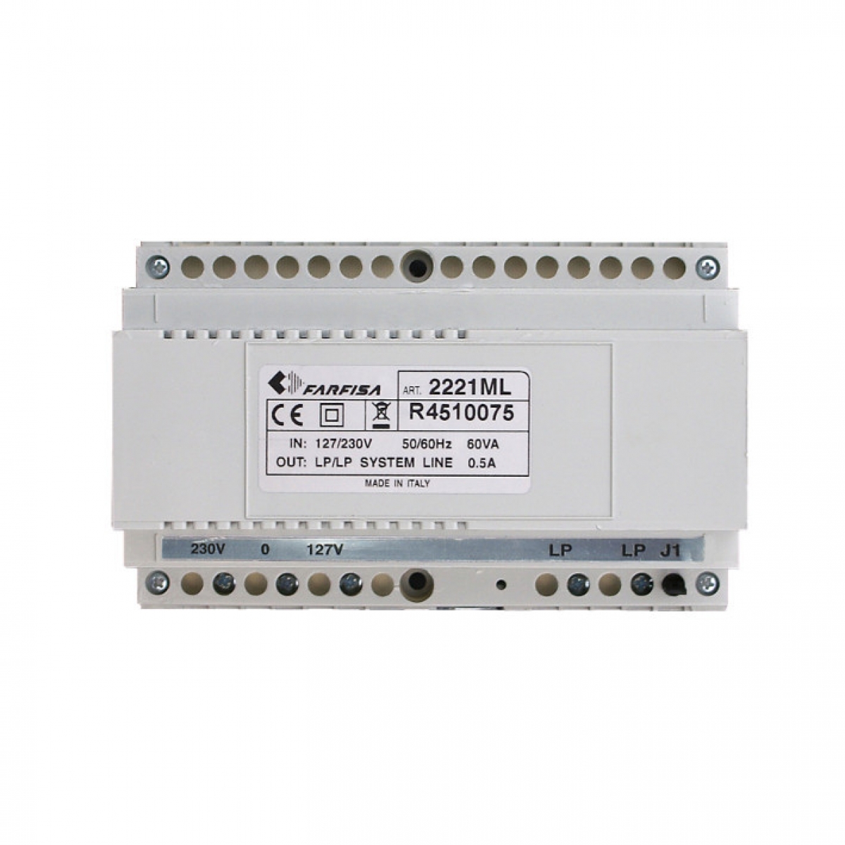 Alimentatore-driver d'appartamento per myLogic in impianti multifamiliari. Per l'alimentazione di rete se 0/127: 127Vca; se 0/230; 220-230 Vca. Garantisce l'impedenza audio e video appropriata. Dimensione: 8 moduli DIN A o da montare a muro